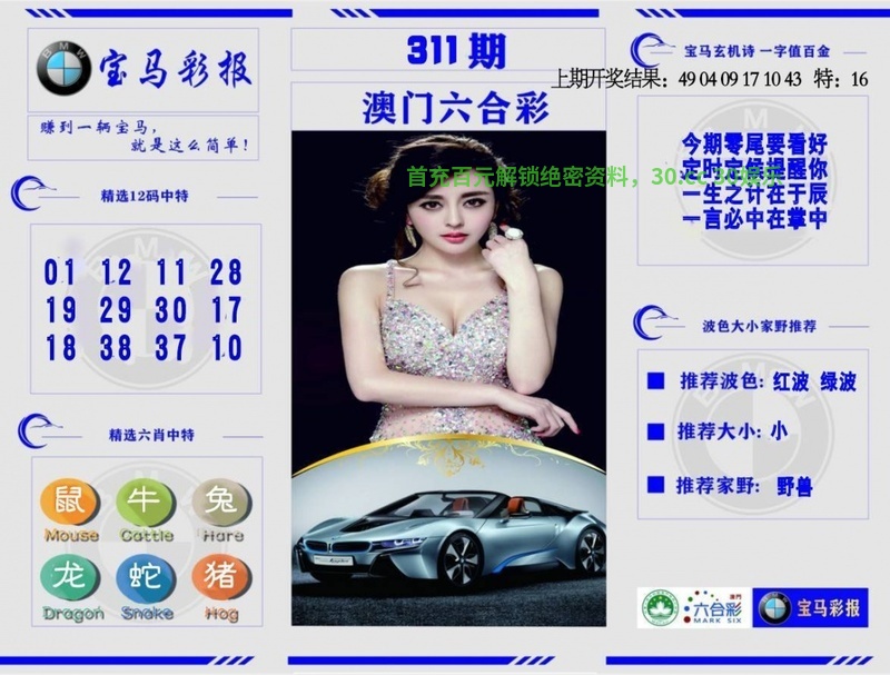 309期:七肖[羊龙鸡狗马猪猴]开:鼠06错